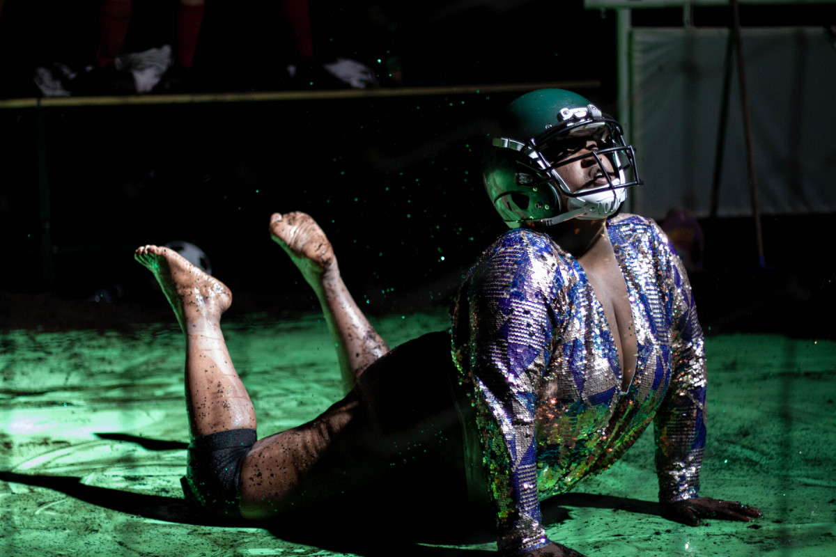 Ten individuals assigned female at birth, practicing football with the team 'Les Dégommeuses' or having a performative practice of the body in effort, come together on a common field: sports and art performance. During the game and with its codes, they engage in a narrative typically seen as belonging to men. They reclaim a sport that has often been taken away from women and tell a political story of bodies, female identities, and football. An intersectional approach to the discrimination faced in society, combining performances, live music, and poetry.